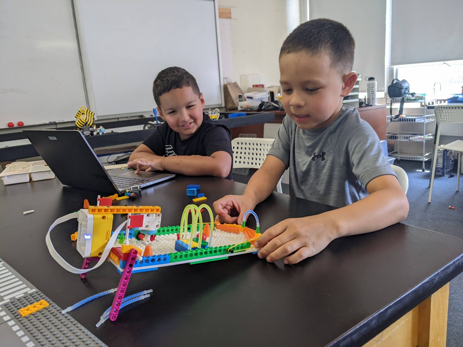 Join our LEGO Robotics Summer Camp to build and program awesome robots using LEGO MINDSTORMS and LEGO SPIKE! Learn how to use motors, sensors, pneumatics, and coding to create unique machines that can interact with the world. Perfect for future engineers and tech enthusiasts, this camp is an exciting hands-on way to dive into robotics and STEAM. Get ready for a fun-filled week of innovation, learning, and friendly competition!