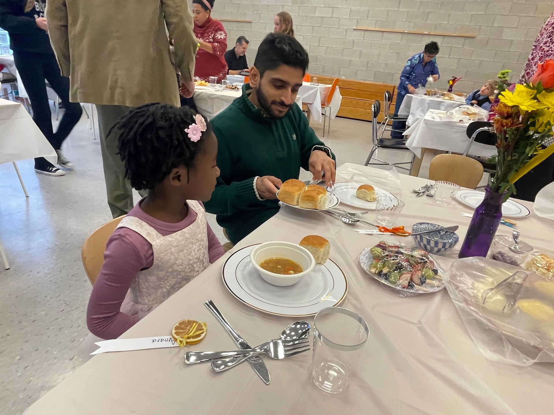 - Upper Elementary & Middle School: Our older students take on more complex tasks, preparing vegetables for a hearty soup, whipping up a tangy cranberry sauce, arranging tables and chairs, setting the table with care, creating beautiful flower arrangements, and assisting with serving the feast. They learn the importance of teamwork, grace, and courtesy, while experiencing the joy of contributing to a shared celebration.
