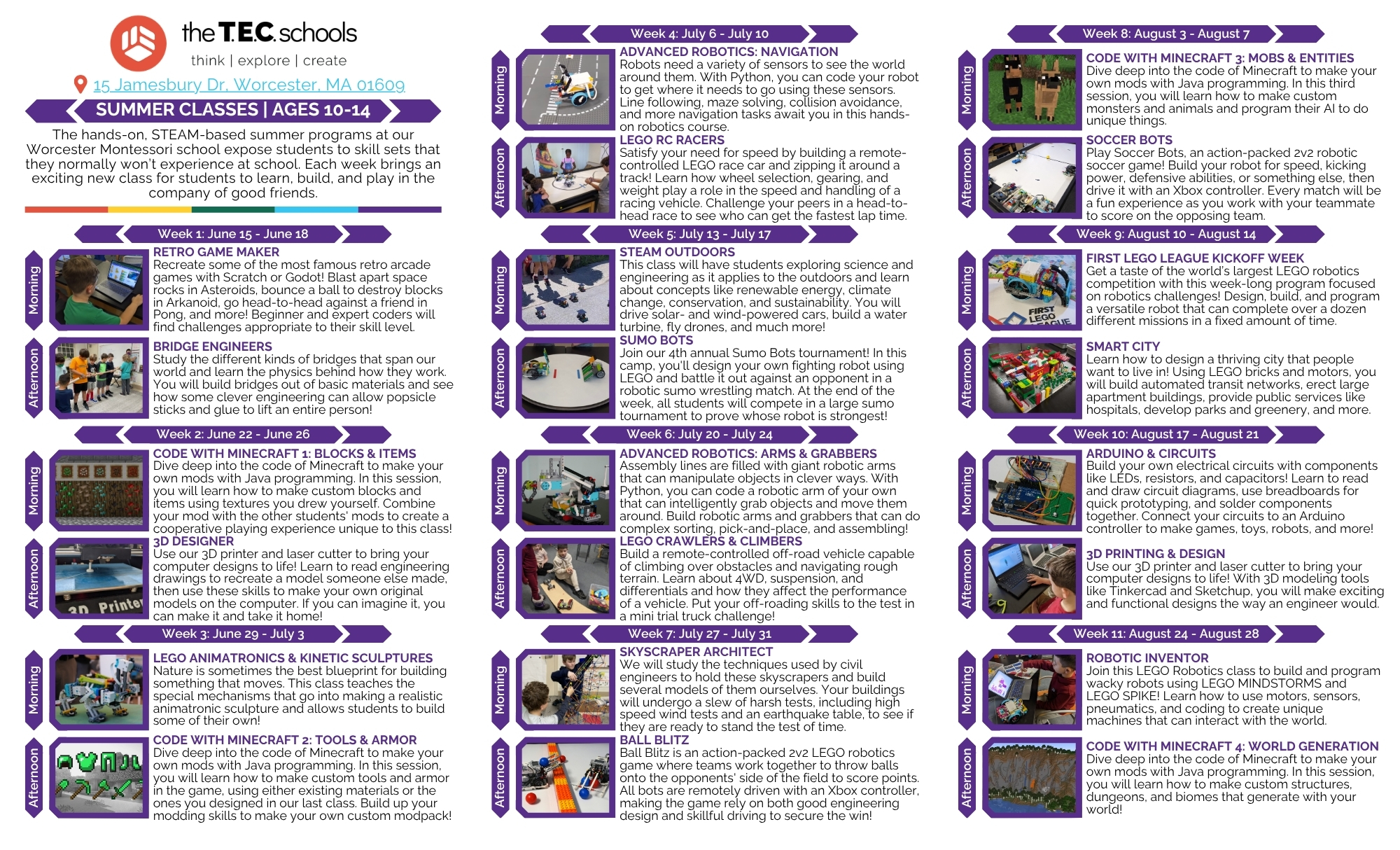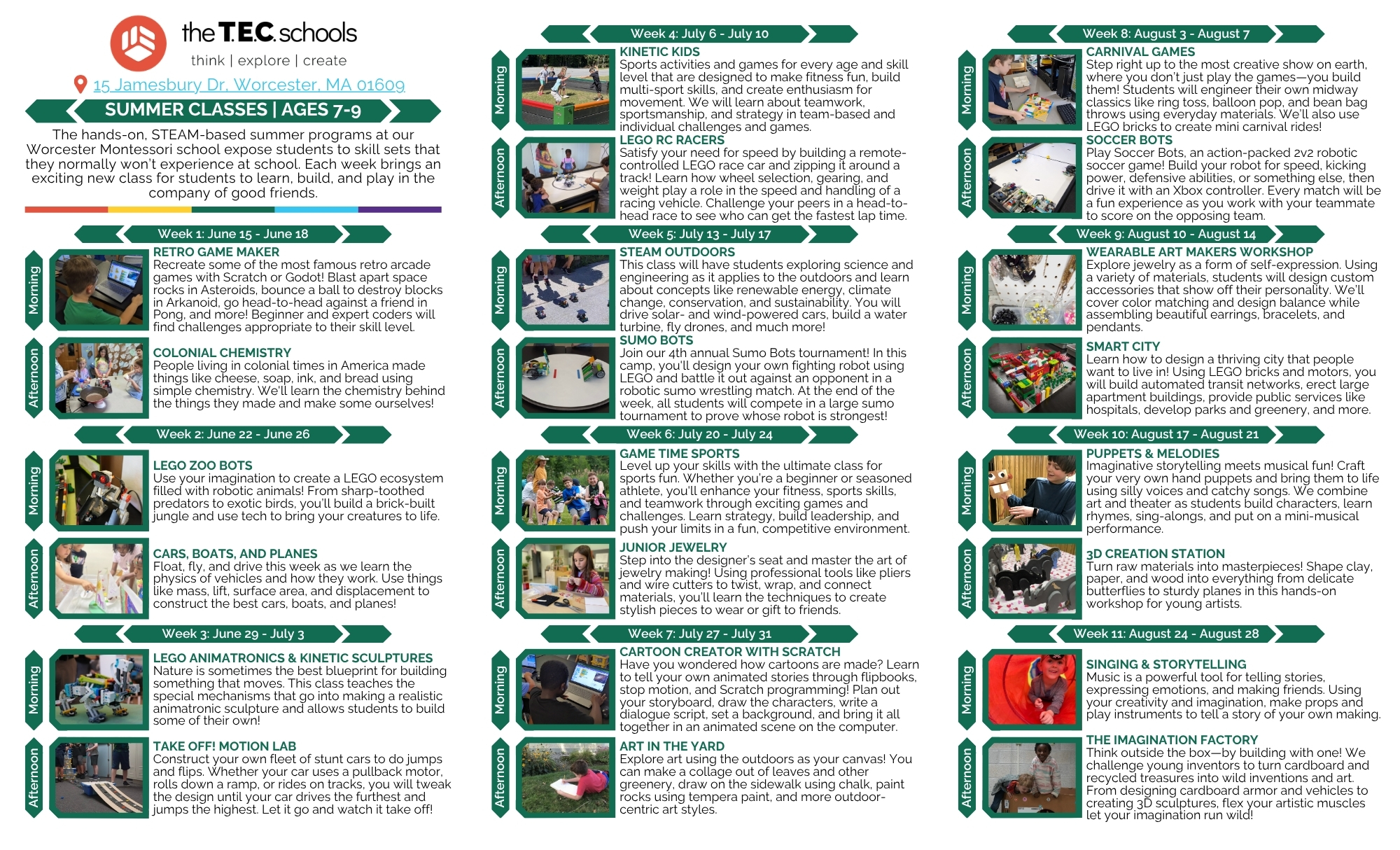 Summer programs are offered on a weekly basis with a morning and afternoon class.